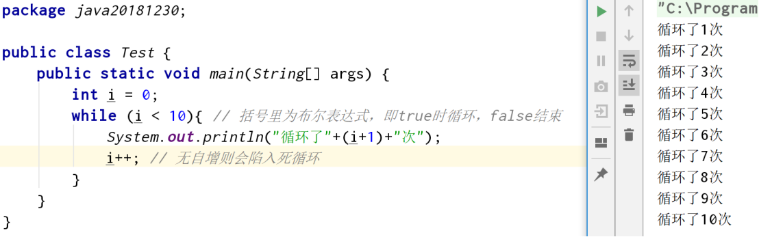 如图所示在循环语句while中当条件为true时一直循环直至条件为false。