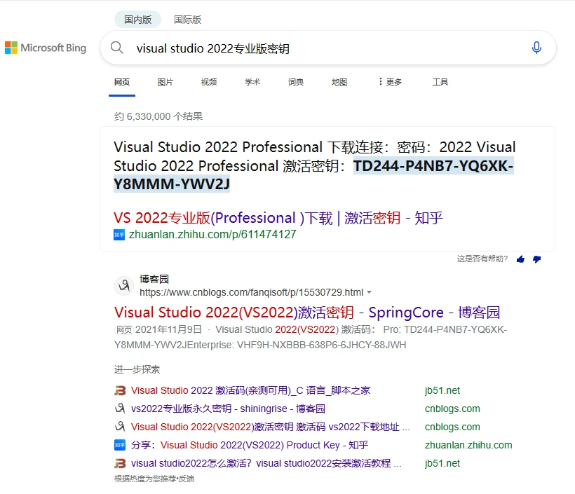 对于专业版的激活,只需要直接搜索“visual studio 2022专业”就可以了。