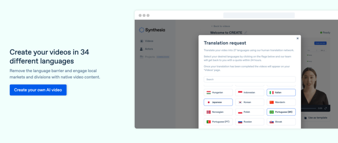 以个性化与客户的对话。借助Synthesia的技术,您可以让视频中的一个人物单独与您的客户交谈,提及他们的姓名和任何其他特定细节。
