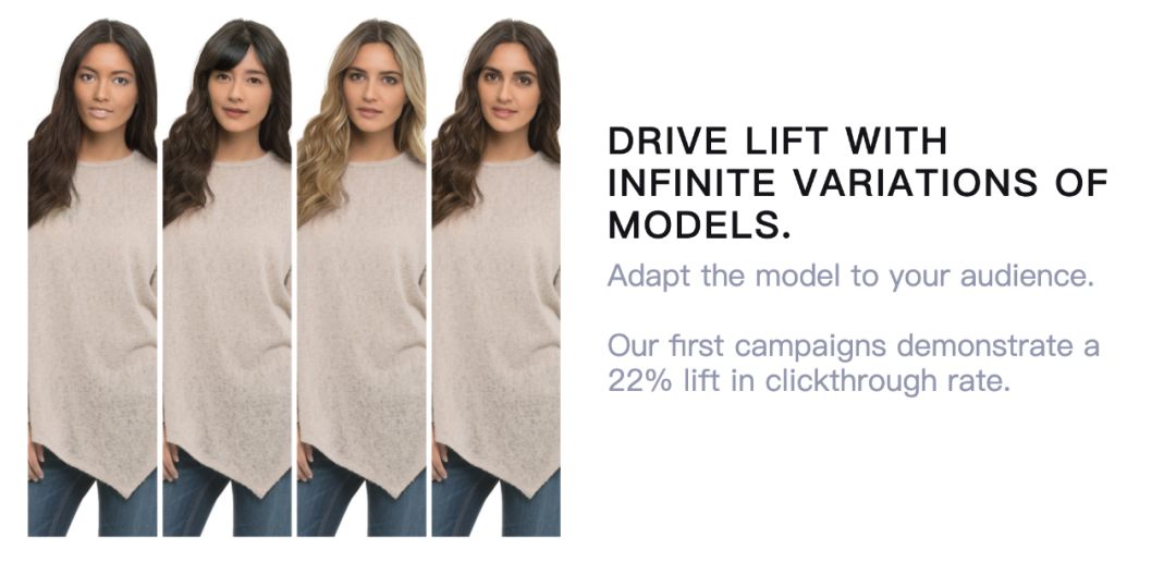该公司可以为您的广告系列生成理想的脸部模型。借助AI生成的营销视觉效果,您不再依赖模特,而又获得了更便宜,更快捷的解决方案。依赖于AI技术,你可以为特定的客户生成个性化的脸部,从而使得广告点击率提高22%。