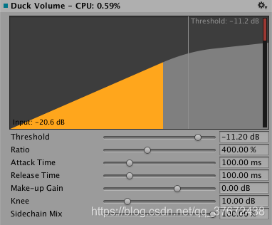 Duck Volume Units 可以为从Sends发送过来的信号生成一个 side-chain compression. Duck Volume 能够在适合的点控制音量衰减