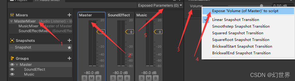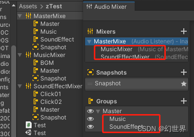 从业多年一直没用过这个混音器工具,毕竟很很多功能都是尽可能的自己写代码控制,这样后期维护和修改都会很容易,最近有学生在咨询声音管理系统,特别是这个混音器怎么使用。趁这次机会赶紧去了解学习了一下,在此记录。这里只记录用混音器统一控制属性,其他的音频资源管理模块这里不涉及,以后有时间单独记录。