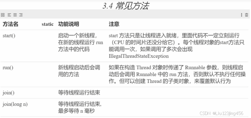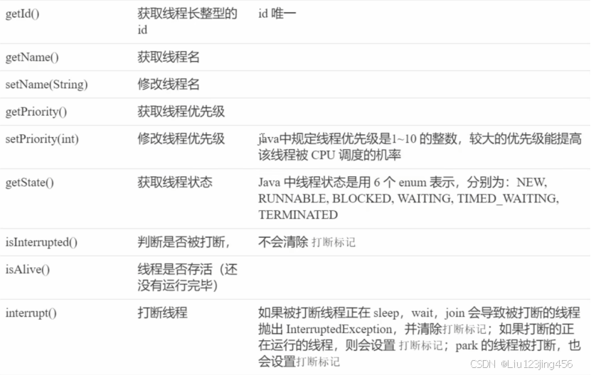 以下是一些Thread类的常见方法: