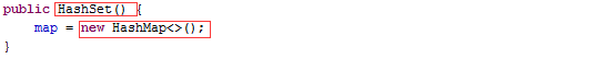new了一个HashSet,前面的文章已经说过很多次了,只要是看到new,这货肯定在堆内存里开辟了一块空间,先找到HashSet的构造函数看看,看到如下代码: