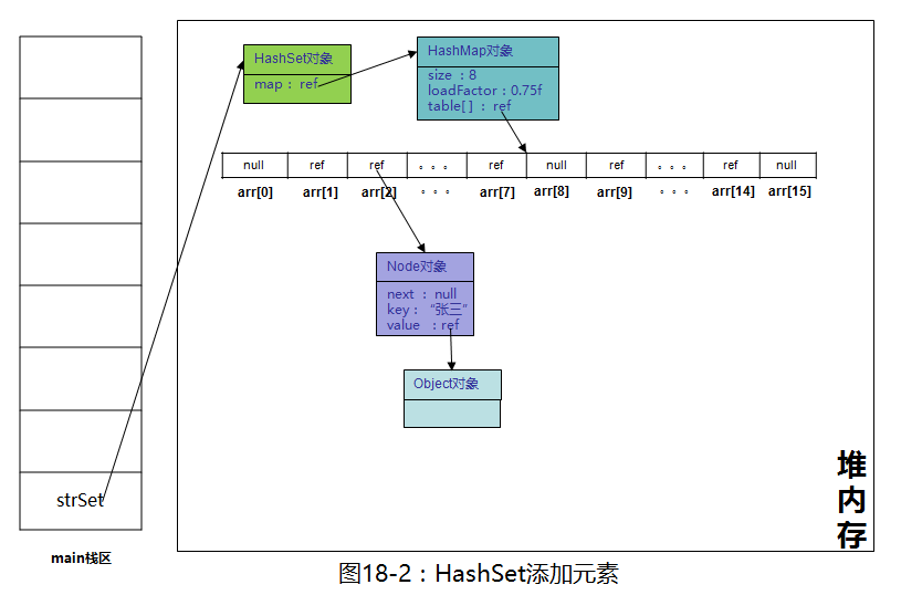 HashMap的初始化在HashMap底层实现原理(上)一文中已经说过了,这里就不再详解了,需要了解的朋友请自行回顾。继续执行以下代码,往strSet添加元素"张三"