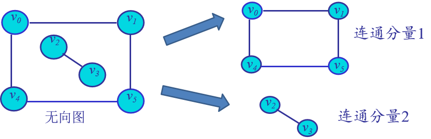 连通:在无向图中,如果从一个顶点vi到另一个顶点vj(i≠j)有路径,则称顶点vi和vj是连通的。