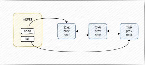 同步器依赖内部的同步队列(一个FIFO双向队列)来完成同步状态的管理,当前线程获取同步状态失败时,同步器会将当前线程以及等待状态(独占或共享 )构造成为一个节点(Node)并将其加入同步队列并进行自旋,当同步状态释放时,会把首节点中的后继节点对应的线程唤醒,使其再次尝试获取同步状态。