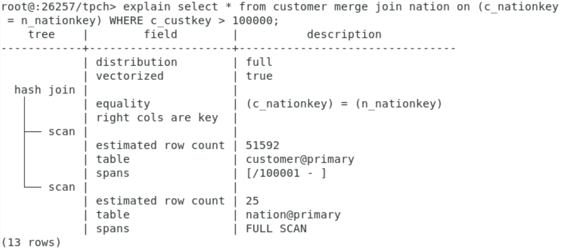 讯享网SELECT * FROM customer JOIN nation ON (c_nationkey = n_nationkey) ;