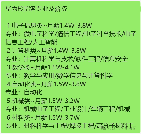 和一个华为人资大佬聊天,给了一些关于华为校招各专业及对应薪资情况,电子信息类和计算机类刚开始薪资范围差别不大。