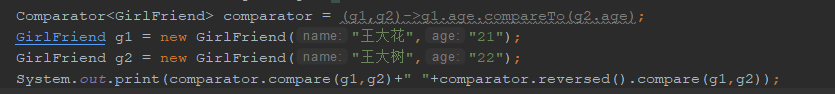 如果没有传入Comparator对象则会使用默认排序,这里我传了个匿名的。
