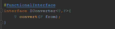 啥叫函数式接口呢,简单的说就是接口里只有一个抽象方法。只有这样的接口才可以用lambda表达式。像这样的接口可以被隐式转换为Lambda表达式(比如与)。这里还有一种注解@FunctionalInterface,它会告诉编译器这个接口是一个函数式接口,一旦多于一个抽象方法便会报错(当然这个注解不是必须的)。